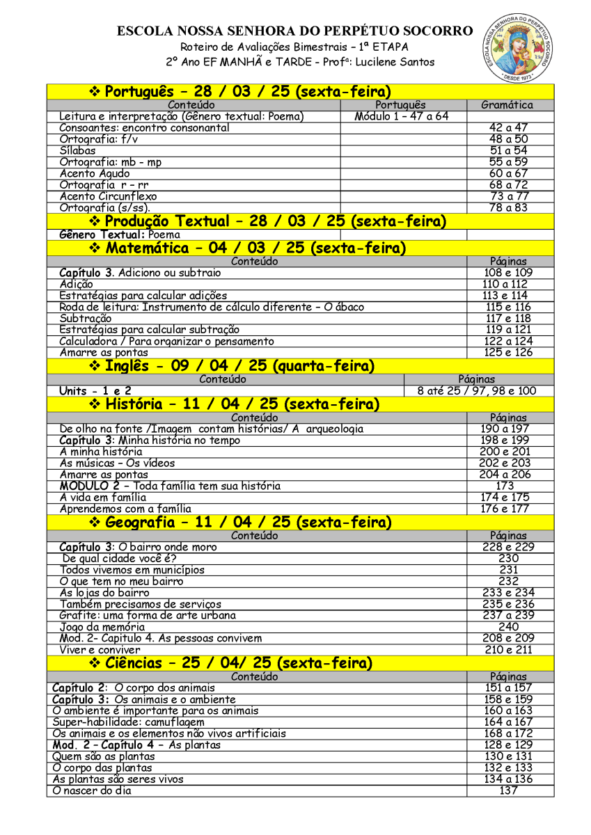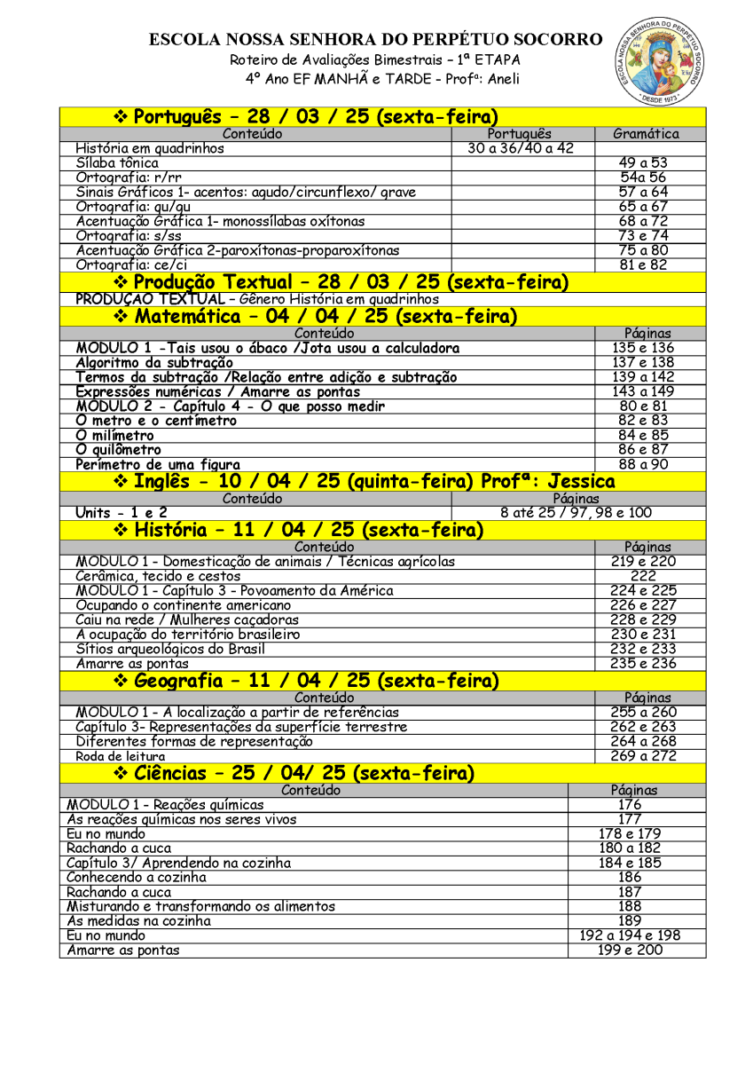 1º BIMESTRE | 2º BIMESTRE | 3º BIMESTRE | 4º BIMESTRE | |||||||||||